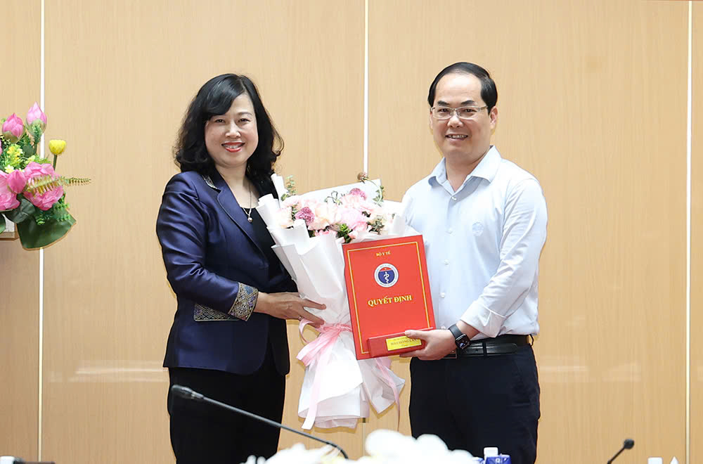Bộ trưởng Bộ Y tế Đào Hồng Lan trao quyết định bổ nhiệm lại Phó Cục trưởng Cục Quản lý Dược đối với TS.Dược sĩ Tạ Mạnh Hùng.