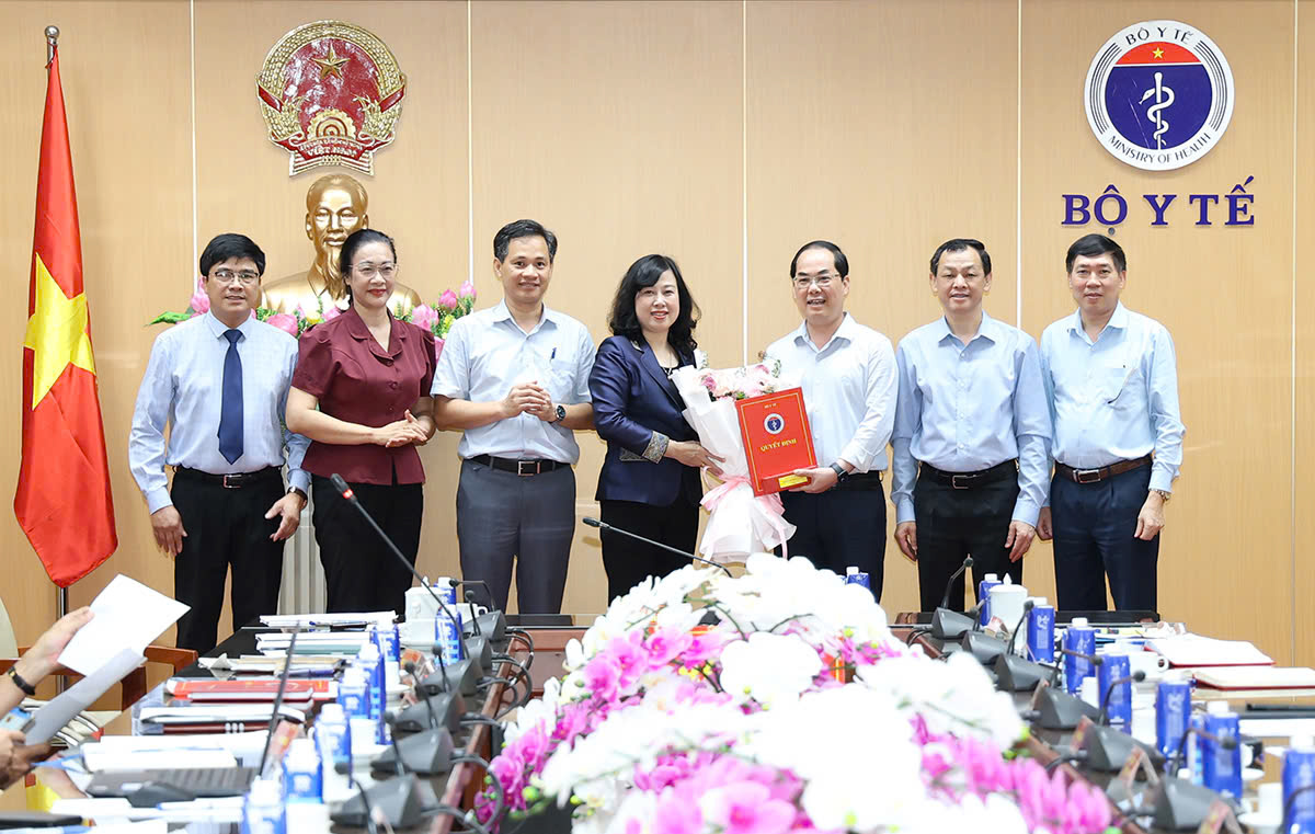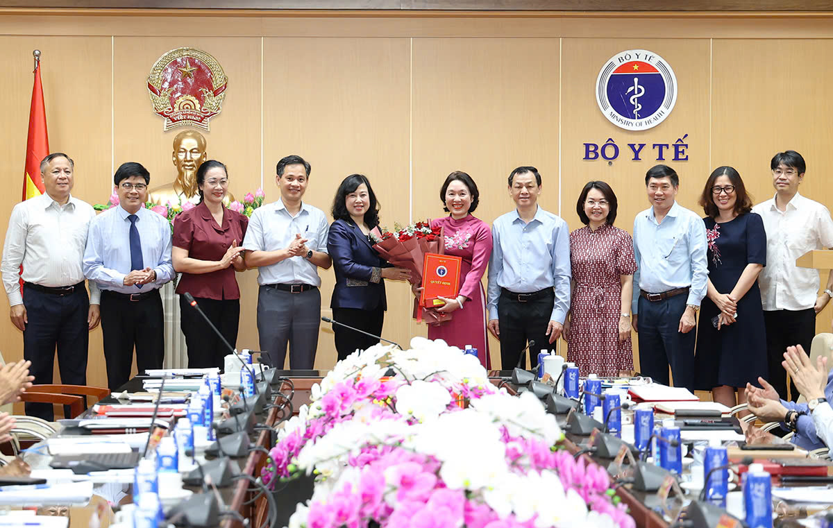 Bộ trưởng Bộ Y tế Đào Hồng Lan, Thứ trưởng Bộ Y tế Nguyễn Tri Thức, Phó Bí thư chuyên trách Đảng ủy Bộ Y tế và lãnh đạo Công đoàn Y tế Việt Nam, Vụ Tổ chức cán bộ, Văn phòng Bộ Y tế và Cục Phòng bệnh, Cục An toàn thực phẩm chúc mừng TS.BS Nguyễn Minh Hằng.