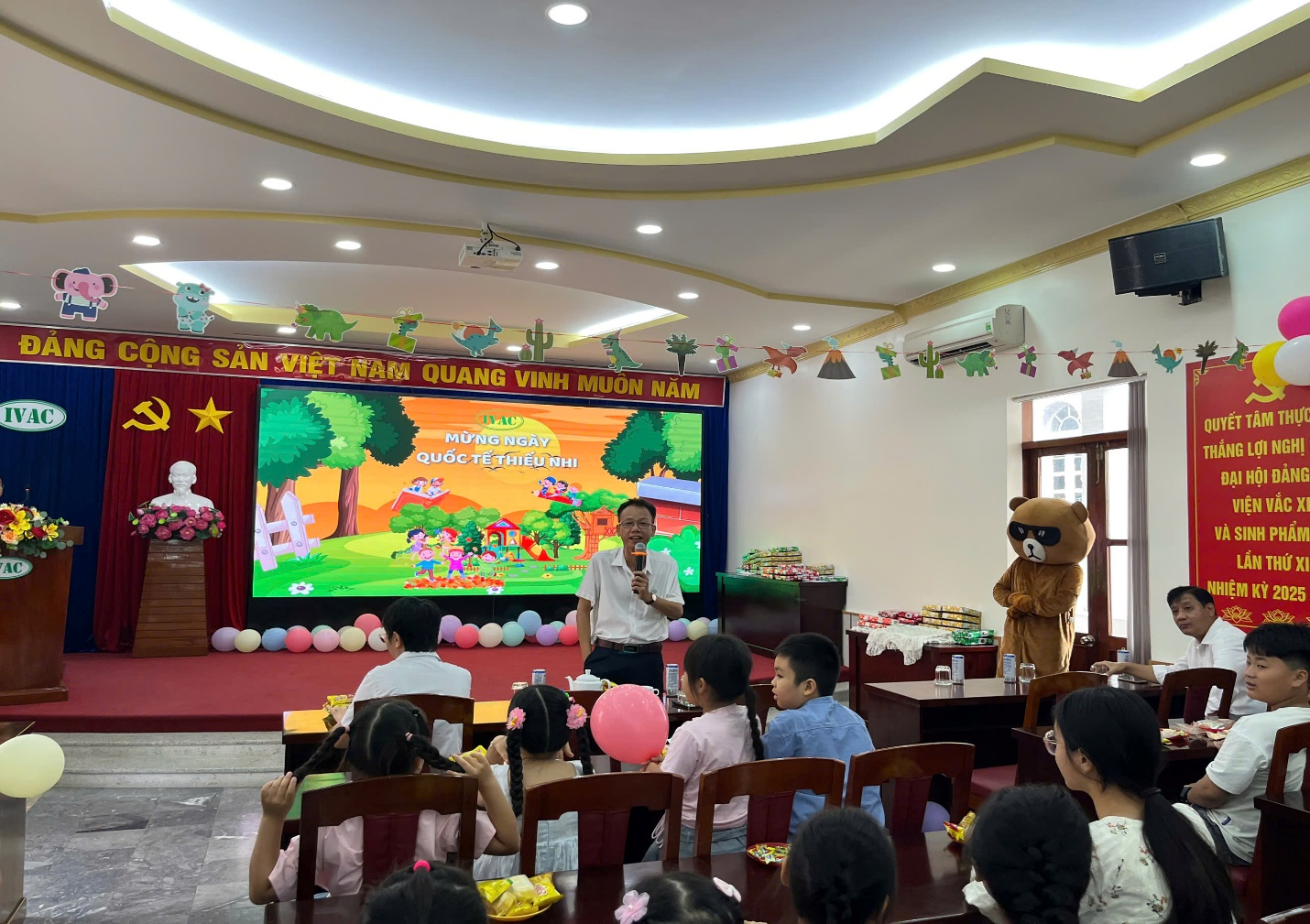 Thay mặt Ban Lãnh đạo Viện, Viện trưởng Dương Hữu Thái đã gửi lời chúc mừng đến các cháu nhân dịp Quốc tế Thiếu nhi. Viện trưởng bày tỏ sự quan tâm sâu sắc dành đến thế hệ mầm non – những chủ nhân tương lai của đất nước – và niềm vui khi được đồng hành cùng các cháu trong ngày hội. Viện trưởng mong muốn các cháu sẽ luôn chăm ngoan, học giỏi và phát triển toàn diện cả về thể chất lẫn tinh thần.