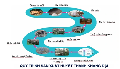 Thạc sĩ Lâm Thị Huế, Trưởng phòng Sản xuất Huyết thanh của IVAC, cho biết thời gian qua đơn vị đã tập trung đẩy mạnh nghiên cứu ứng dụng công nghệ mới và tối ưu hóa quy trình, nhằm tăng sản lượng và chất lượng huyết thanh kháng dại. IVAC cải tiến, tối ưu hệ thống và quy trình sản xuất từ việc chăm sóc nuôi dưỡng đàn ngựa, quy trình gây miễn dịch khai thác huyết thanh thô đến quy trình tinh chế, để cho ra sản phẩm huyết thanh kháng dại có độ tinh sạch cao.