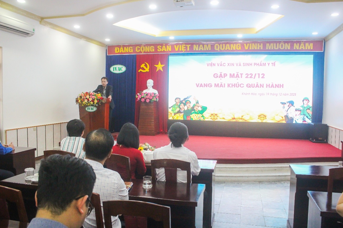 Ngay sau Hội nghị tổng kết, Đảng ủy và Ban lãnh đạo Viện đã tổ chức chương trình “Gặp mặt nhân ngày Quốc phòng toàn dân 22/12” trong không khí trang trọng, ấm áp và nghĩa tình. Thay mặt Ban lãnh đạo Viện, đồng chí TS. Dương Hữu Thái đã phát biểu chúc mừng, bày tỏ sự tri ân sâu sắc đối với các cán, viên chức từng tham gia quân ngũ, lực lượng tự vệ và những cá nhân có đóng góp cho sự nghiệp bảo vệ Tổ quốc.